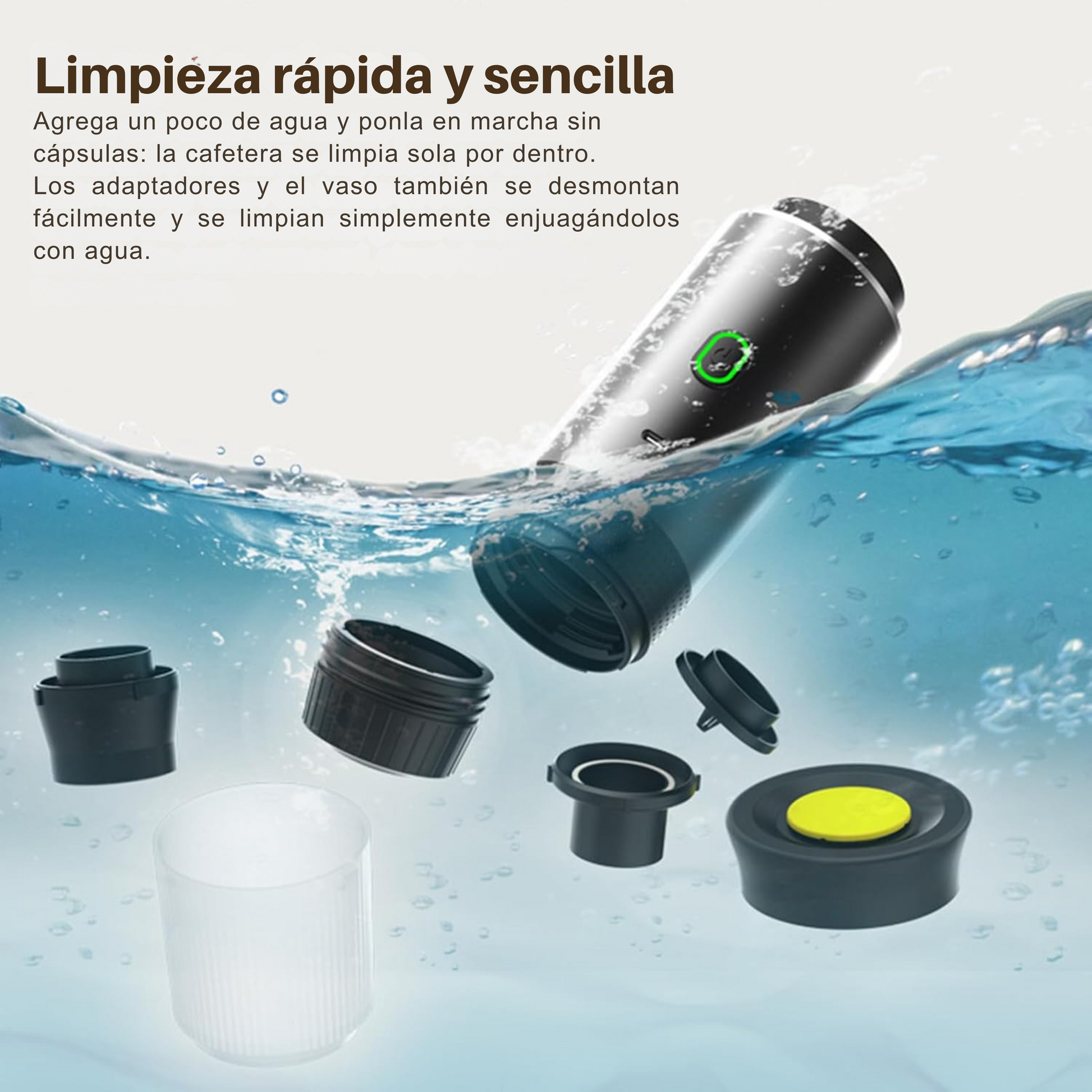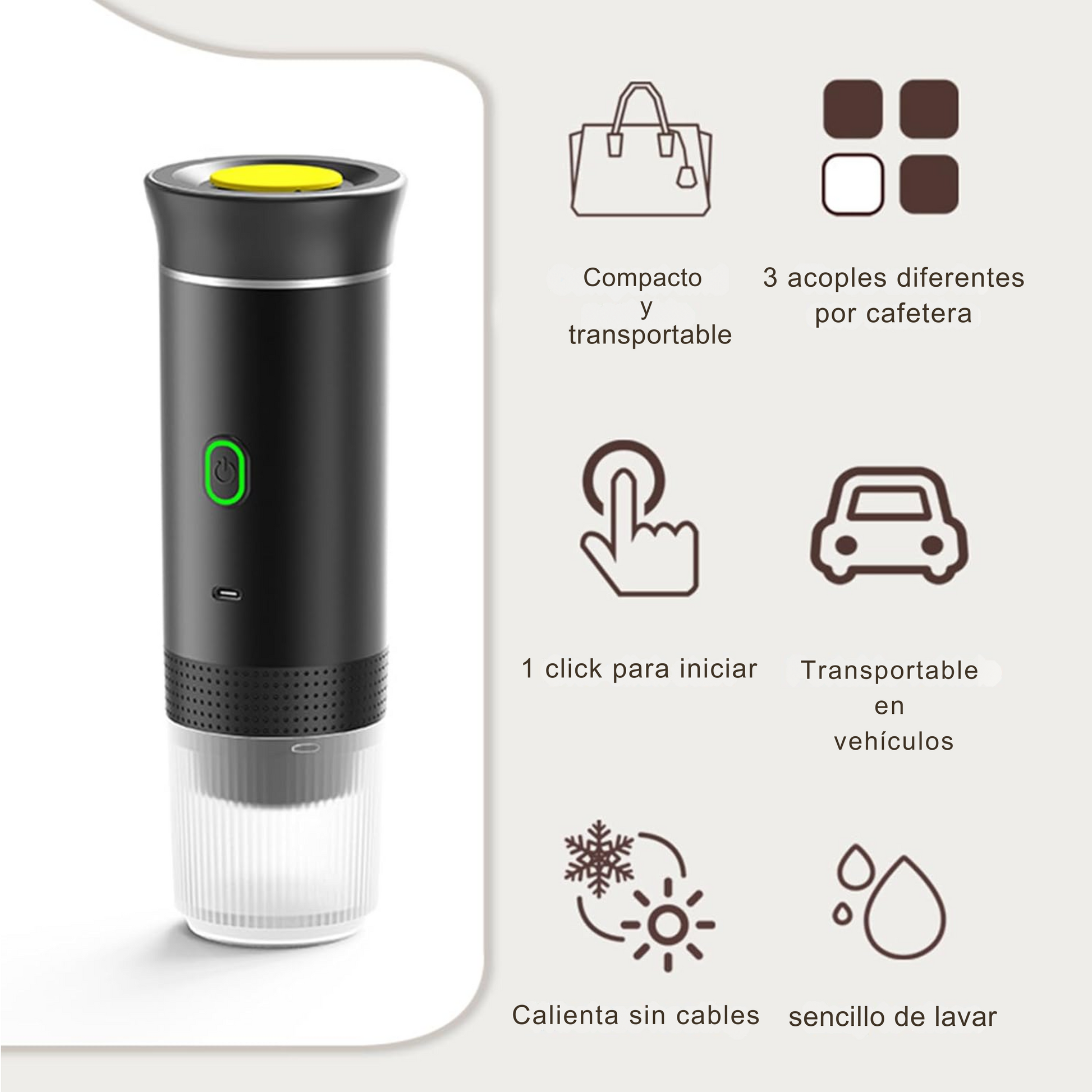 La cafetera portátil 3 en 1 que te acompaña en el trabajo, en el coche, de viaje o donde lo necesites. Sin cables, sin esperas. Solo café, cuando tú lo quieras.